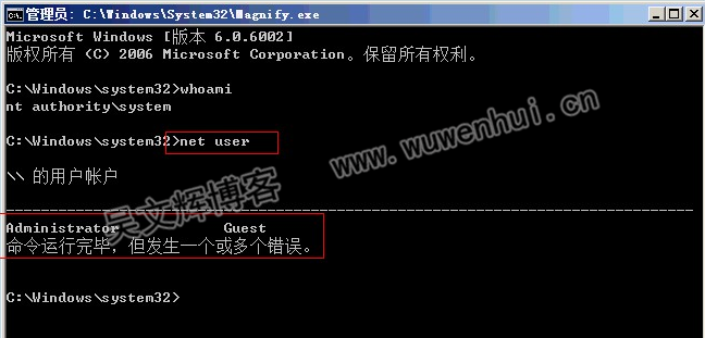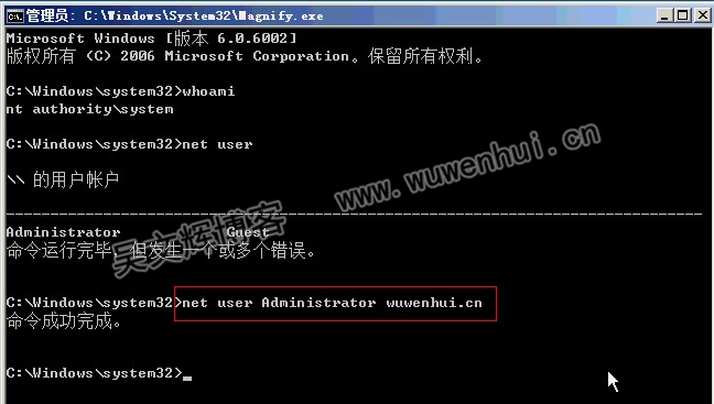 记住,密码修改完毕,用相同的方法将magnify.exe文件替换回来,以免被黑客等利用。