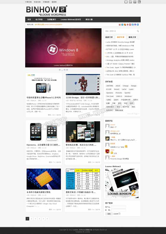 洛米自制Loome_binhow主题,首先感谢作者对无私的共享精神,相信会有很多人喜欢这款漂亮且有质感的wordpress主题。这款主题的前身是Binhow的国产cms主题,经过修改和优化后,界面和美观都有很大的变化。