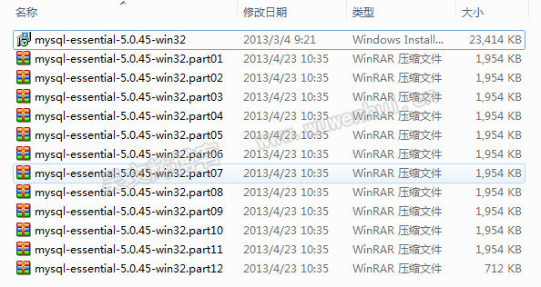 4、点击”确定“,这样就将 mysql-essential-5.0.45-win32 分成12个压缩包!很多论坛都对上传文件大小做限制,我们就可以利用这种方法来分享您的资源。解压时只需解压其中一个就可将所有压缩包解压。