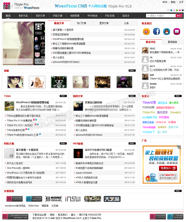 幻灯:当你发表了一片文章,如果想在首页幻灯片显示,你需要给它增加一幅缩略图并且将它置顶。