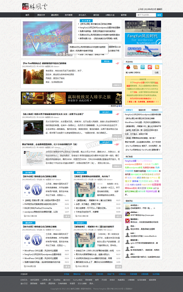 原先安装了FengYun 1.0 版本的,更新时候可以先在后台将原主题删除,然后再通过后台上传FengYun2.0.zip安装2.0版的主题,上传后不要点保存设置。