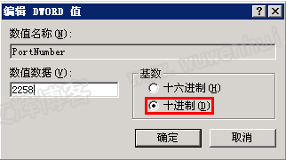 2、HKEY_LOCAL_MACHINE/SYSTEM/CURRENTCONTROLSET/CONTROL/TERMINAL SERVER/WDS/RDPWD/TDS/TCP 右边键值中 PortNumber 改为你想用的端口号,注意使用十进制(2258)