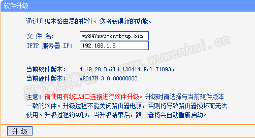 2, 升级过程中不能关闭路由器电源,否则可能导致路由器损坏;