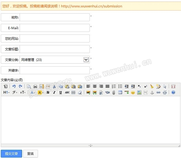 今天要讲的是如何给这个投稿功能添加一个丰富文本编辑器(也包括了图片上传功能),原来的代码只能实现一个简单的纯文本输入框,对于投稿者的输入体验不太好。