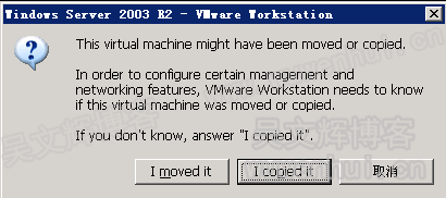 当我们将虚拟机安装好的系统移动或拷贝到另一台电脑使用时,打开虚拟机的时候,系统会提示我们: