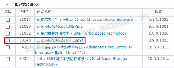 2、进入官网查找型号进入驱动下载页面,找到AHCI驱动下载。