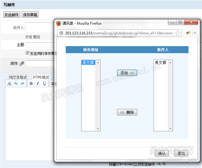 3、在全局通讯录增加联系人,写邮件时点击收件人,就弹出全局通讯录联系人地址薄~