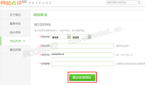 2、首先需要在360搜索上右上角注册一个会员,然后登录这个地址:http://dianping.360.cn/impression/wuwenhui.cn 把后面的网址替换成成你自己的。
