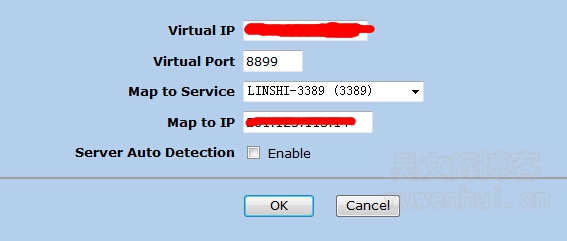 在Map to IP中填写你内网需要映射的地址,不要勾选Server Auto Detection 后 Enable 选项,点击OK按钮提交。