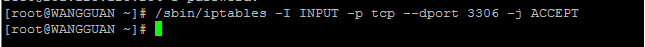 第1步:使用本机或ssh连接到centos系统,”/sbin/iptables -I INPUT -p tcp –dport 3306 -j ACCEPT “命令并确定。