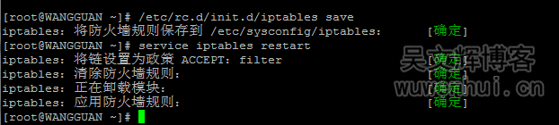第3步:这时不算已经完成,必须再执行一个“/etc/rc.d/init.d/iptables save”命令并确定。