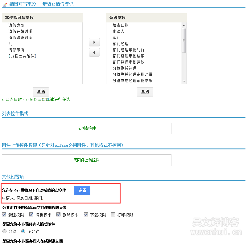 4、找到“其他设置项”,设置 允许在不可写情况下自动赋值的宏控件 的字段。