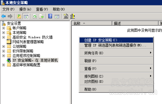 2、通过IP安全策略(比较复杂,功能强大,不依赖防火墙)