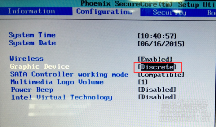 安装 Win8 前(如你已经装好Win8现在是蓝屏状态,那么直接强行关机)进入 BIOS 将 Graphic Device 项改为Discrete 如下图: