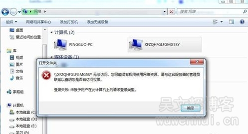 装了Win7之后很多人遇到这样的问题,网上邻居访问Win7的电脑时出现“未授予用户在此计算机上的请求登录类型”问题。