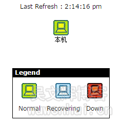 以下所看到的是Monitor选项卡下所监控的机器状态。当有机器Down掉后,相应机器图标将由绿色变成红色,并发出声音进行报警。