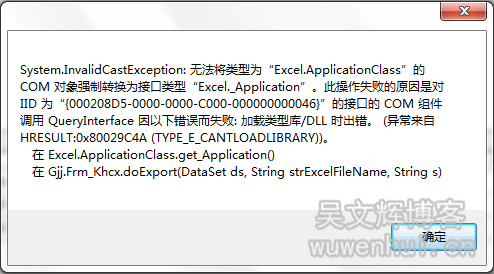今天在用一公积金系统的时候导出Excel报错提示:无法将类型为 excel.applicationclass 的 com 强制转换为接口类型 excel._application 的问题。