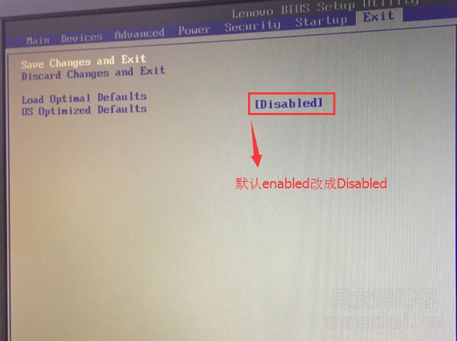2、转到Exit,把OS Optimized Defaults设置为Disabled;