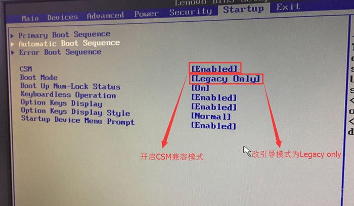 3、切换到Boot,把Boot Mode从UEFI改成Legacy only引导模式,再把csm默认disabled改成enabled,开启兼容模式,选择F10保存设置,在弹出的选项中选择YES;