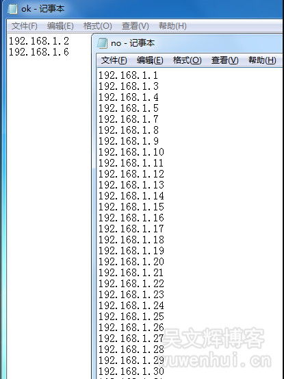 这段代码会将ping通的IP和不通的IP分别放到两个文件里面,这样是不是很方便啦,如下图: