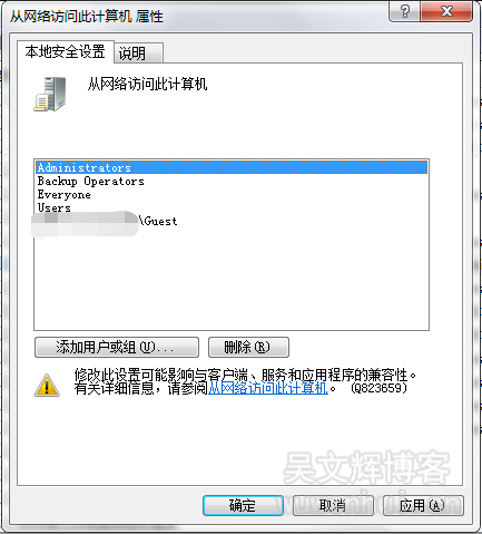 然后再打开从网络访问此计算机,看看里面有没有everyone guest user 等账户,没有的话添加进去;