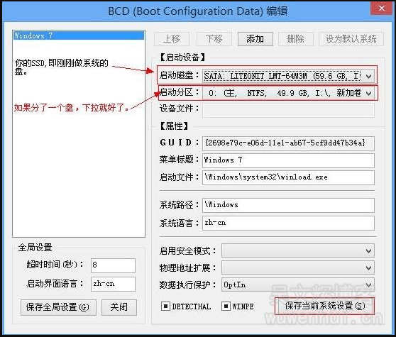 5、用BOOTICE工具,打开机械硬盘的引导文件,修改成固态硬盘的,如下图操作。