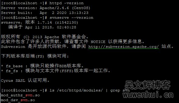 yum install subversion mod_dav_svn三、安装完成后可以通过如下命令查看是否安装成功