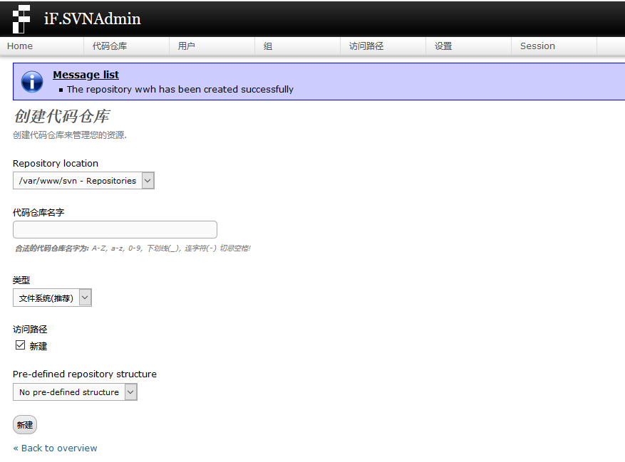 完成后则会在“代码仓库”中看到新创建的wwh仓库
