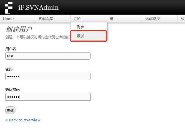 保存后,会在 /var/www/svnconfig/passwd 文件中自动生成默认用户名和密码,都是admin