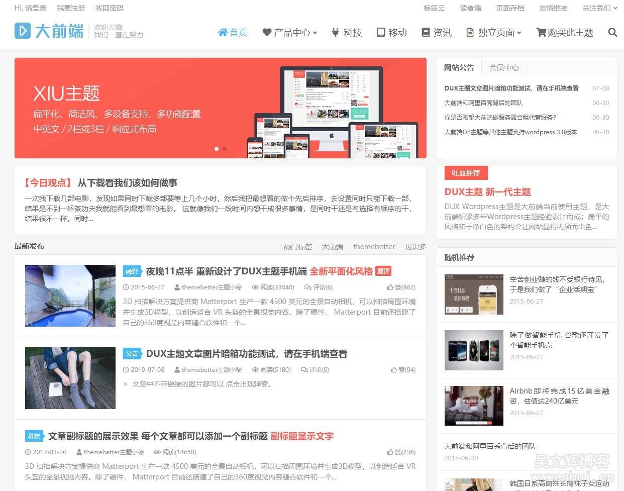 DUX主题支持专题功能、百度收录推送、人机验证、多级分类筛选器,适用于垂直站点、科技博客、个人站,扁平化设计、简洁白色、超多功能配置、会员中心、直达链接、自动缩略图等等。7.0版本支持PHP8,新增文章专题。