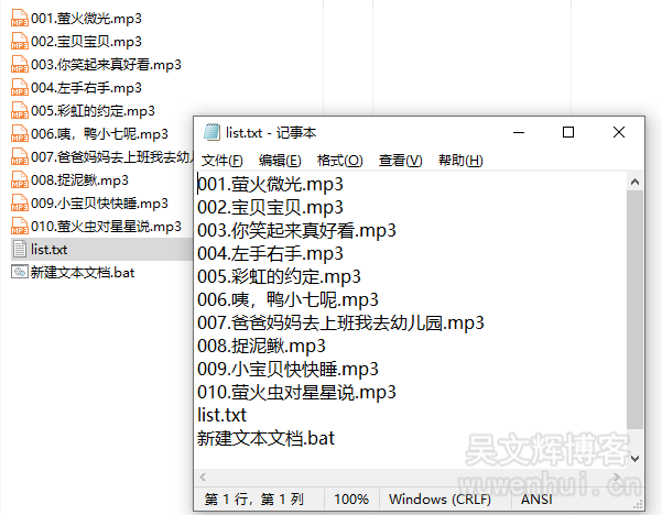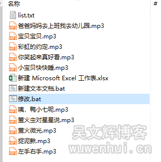 3、修改新建文本文档后缀为.bat,运行刚刚修改的bat文件,然后就会发现当前目录下会多出一个list.txt的文本文档,打开list.txt文档,查看其中的内容可以发现list.txt中记录了当前目录下的所有文件名称,包括后缀名,如下图: