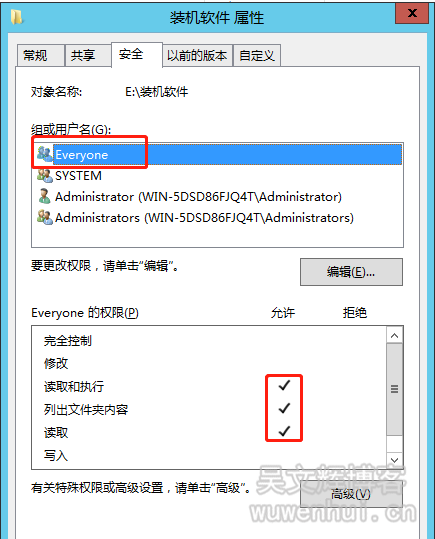 1、找到需要共享的文件夹,设置共享权限,设置为everyone读取权限。