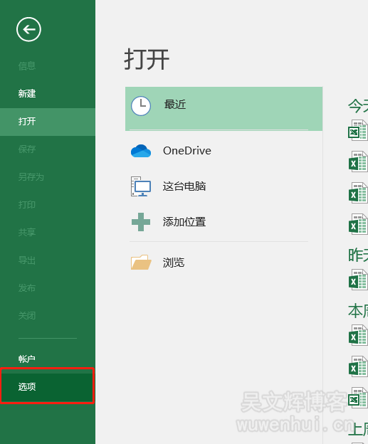 3、在文件菜单中点击选项,如下图所示。