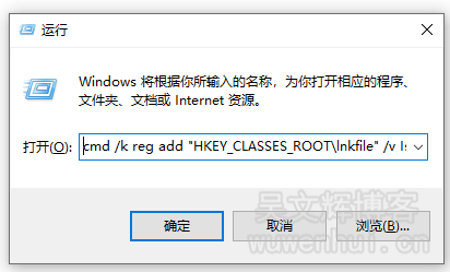 cmd /k reg add "HKEY_CLASSES_ROOT\lnkfile" /v IsShortcut /f & taskkill /f /im explorer.exe & start explorer.exe点击确定,等待Windows 资源管理器重启即可。