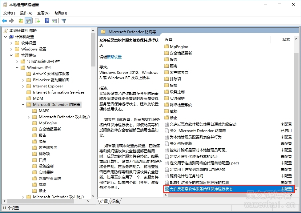 10、然后双击【允许反恶意软件服务始终保持运行状态】;