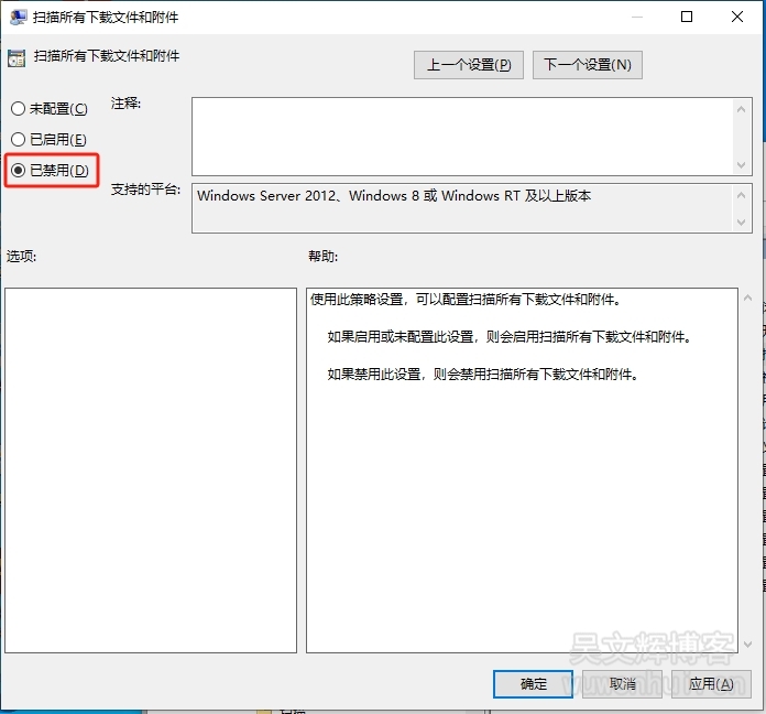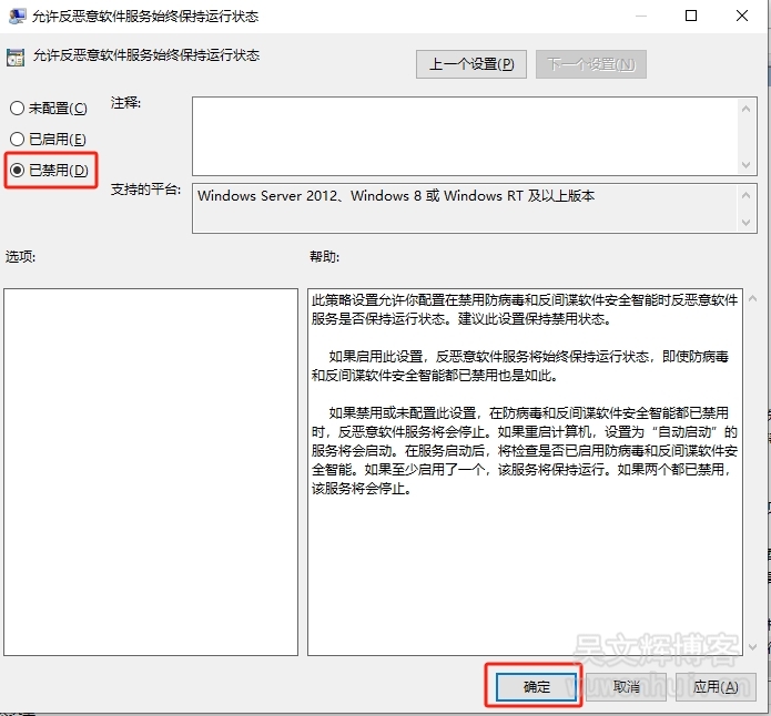 15、选择【已禁用】,点击【应用】,然后点击【确定】;