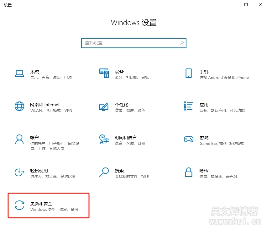 2、点击【更新和安全】;