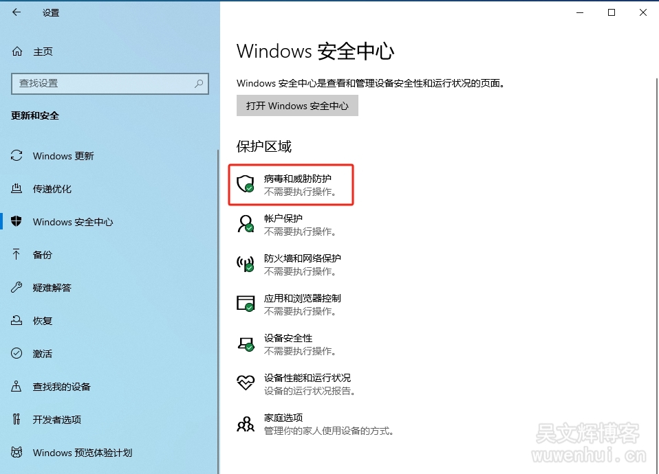 3、打开【病毒和威胁防护】;