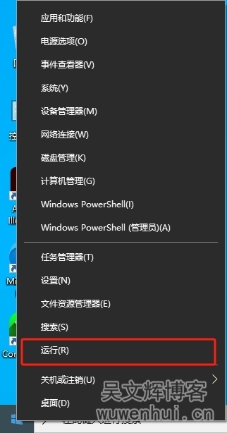 6、键盘上按【WIN+R】 或者鼠标右击桌面左下角Windows图标,选择【运行】弹出运行窗口;