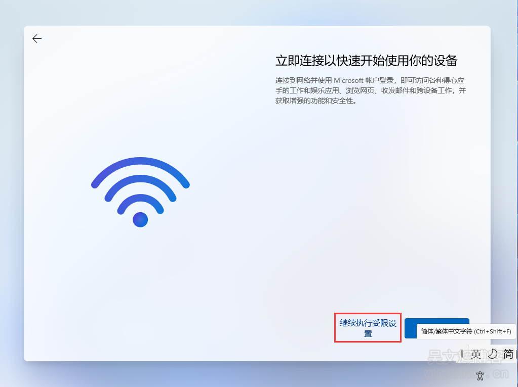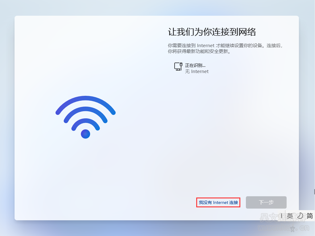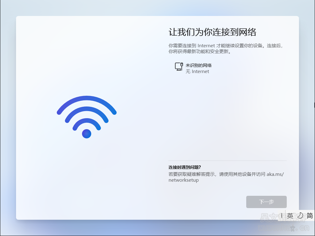 1、开机后待显示如下界面,按Shift+F10,部分笔记本Shift+Fn+F10,无需等到联网步骤;