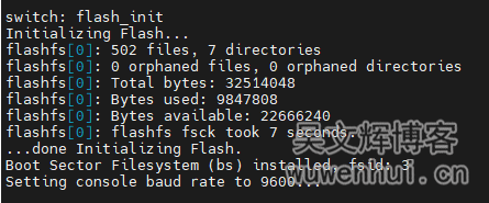 3、输入命令如“flash_init”回车,初始化flash文件系统。