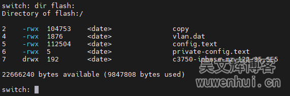 4、输入“dir flash:”回车,查看交换机配置文件。
