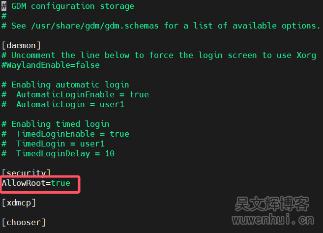 1、编辑/etc/gdm3/daemon.conf文件,在[security]下添加AllowRoot=true;