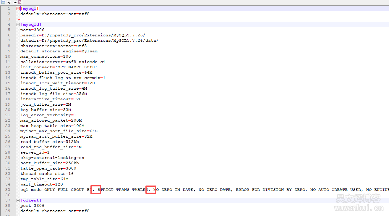 打开文件找到sql_mode=这一行,删除逗号后面的空格,然后重启MySQL就可以了。