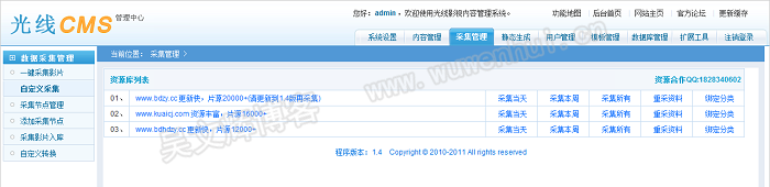 光线影视系统(光线CMS/GXCMS)是一套采用PHP+MYSQL环境搭建的智能建站系统,只要五分钟,一个拥有海量电影讯息的专业网站就会呈现在你的眼前。GXCMS由“影视/新闻内容管理系统,用户系统,影片收费系统,一键采集系统,广告系统,友情链接系统”等模块组成,相信GXCMS完全能满足您的建站需求。